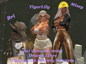 The magic of SL is everywhere, well maybe, just Drama Libre. This week they decided to do a little Digging Up History. So equipped with my trust virtual shovel, I trekked on over to see what could be found. Everyone did there level best and we have some amazing appearances by our Golden Hosts Peachy and Xerxes with the support of DJ Danica Cruz reminding us that sometimes musical covers are their very own lyrical and rhythmic form of discovery. So many amazing looks for this event, so many stand outs, I am having the toughest time picking my favorites. Tiny Mummy, Lead Archeologist, and so many historical and beautifully detailed costumes of luminaries of old. The winners this week really showed their versatility. Winners this week were Bri as the first place winner and the lovely TigerLily and Missy tied for second place. Bri really put out all the stops not just by keeping one look, she changed looks throughout the evening truly digging up her own history of looks from current and past Drama Libre events.