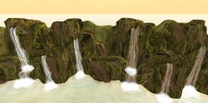 I had missed something the first time. A right turn that seemed nothing out of the ordinary, which is why I hadn’t taken that turn. Now I did and realized what looked like a house was actually a gazebo with a nice sitting area. Right behind it was a waterfall with a sparkling water pool. I tried the couch on the gazebo. Comfortable. Standing up was a bit of a problem since I floated around the top of the insides of the gazebo before landing outside on the grass. Not fun.