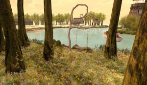 Of the many things I had missed was a swing. A swing that swung, unlike the one my friend had sat in yesterday… and commented she wished the swing had swung. Well, you had that option too. You could read a book, have a drink or choose from a couple of other animation options, but had to grant permission to attach them to your avatar. The gently rocking swing was soothing and here, I spent quite some time. Sitting there, my gaze fell on the water body ahead of me, where an old wooden lighthouse and a boat gave each other company. It was exactly what it should have been – gentle, calming and very relaxing. A place to think and contemplate.