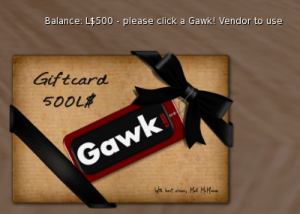 | GAWK! | http://maps.secondlife.com/secondlife/Lupine/184/41/53 | Â $ 500 | |