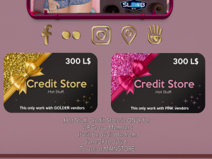 | Stiff Store | http://maps.secondlife.com/secondlife/Buttercup/41/153/53 | Â $ 400 | |