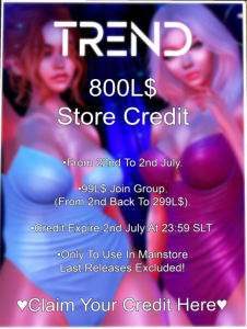 | TREND | http://maps.secondlife.com/secondlife/Sugarplum/153/40/53 | Â $ 2,450 | Â $Â 1,099 |